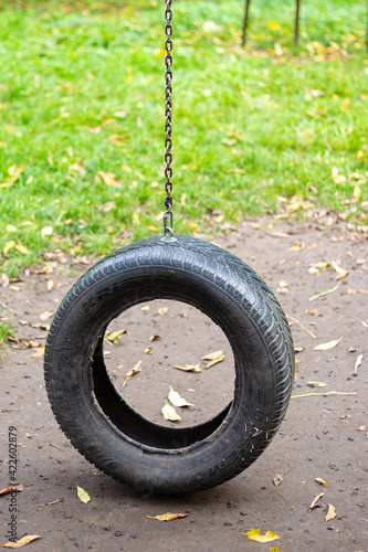 © TVIT, Fototapeta premium children's swing in the park, a swing from the tire