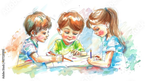 Fototapeta premium Children showing their artwork in an elementary school