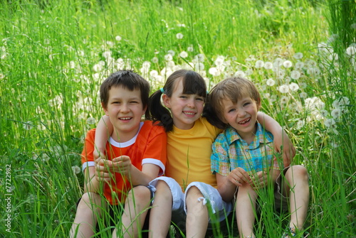 © Marzanna Syncerz, Fototapeta premium Children Sitting in Meadow