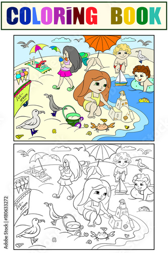 © toricheks, Fototapeta premium Children swimming at the beach and play with toys