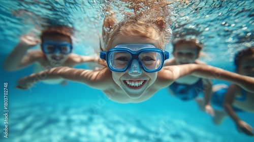 © Yekaterina, Naklejka premium Children Swimming Underwater Adventure