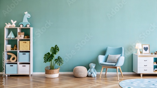 © Chenda, Fototapeta premium Children vintage room minimalist cozy space blank wall mock up copy text paste
