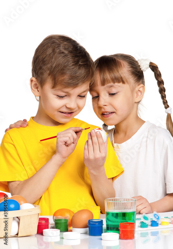 © DenisNata, Fototapeta premium Children with Easter eggs