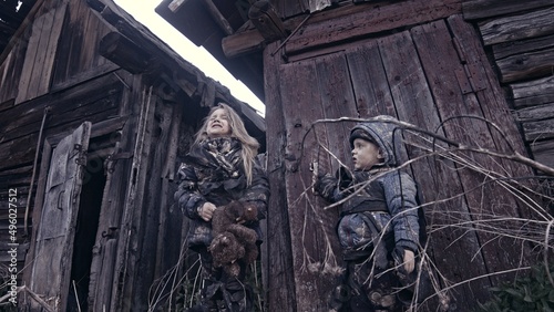 © Sergey, Fototapeta premium Children without a home, apocalypse, war