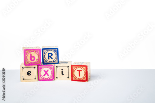 Obraz premium Childrens Wooden Alphabet Blocks Spelling the Word Brexit