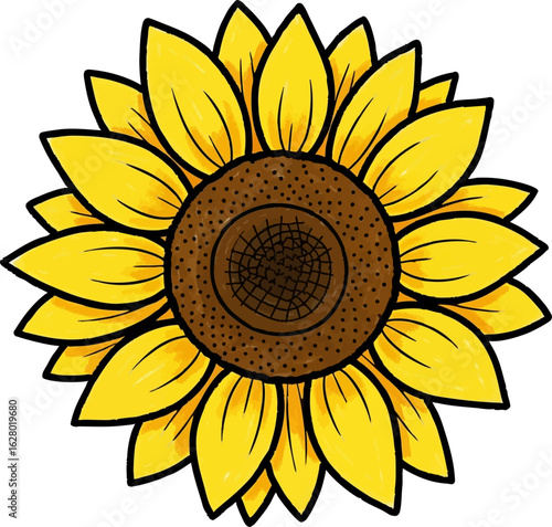 © Jinnam, Fototapeta premium Childs Drawing of a Bright Yellow Sunflower