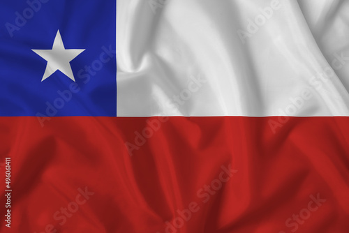 © Botygin, Fototapeta premium Chile flag with fabric texture. Close up shot, background