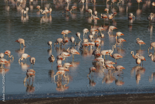 Fototapeta premium Chilean Flamingo, Phoenicopterus chilensis, La Pampa , Argentina