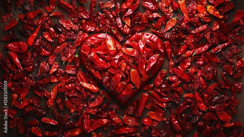 Fototapeta premium Chili pepper heart, red spice, rustic wood, Valentine's, food blog