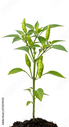 Fototapeta premium Chili Pepper Plant Growing in Soil.
