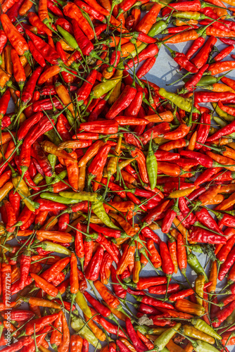 © Matyas Rehak, Fototapeta premium Chilli peppers being dried in Laos
