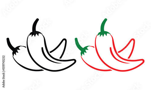 © ellistya, Fototapeta premium Chilli red pepper black line icon. Paprika. Hot spices product sign. Mexican food concept vector template