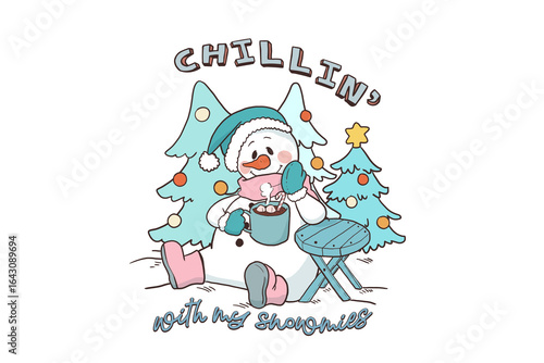 Fototapeta premium Chillin’ with My Snowmies, Cute Winter Fun Scene Sublimation T Shirt Design