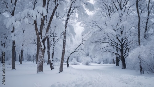© DigitalDruid, Obraz premium Chilly winter forest filled with snow-laden trees and icy landscape