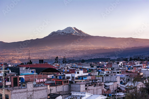 © ecuadorplanet , Fototapeta premium Chimborazo volcano with a city