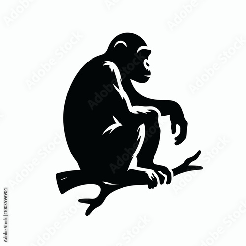 © sahenur89, Obraz premium Chimpanzee animal vector design, chimpanzee head logo icon silhouette vector illustration