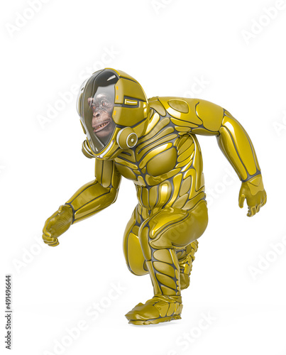 © DM7, Fototapeta premium chimpanzee astronaut is running in white background