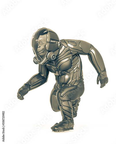 © DM7, Fototapeta premium chimpanzee astronaut is running in white background