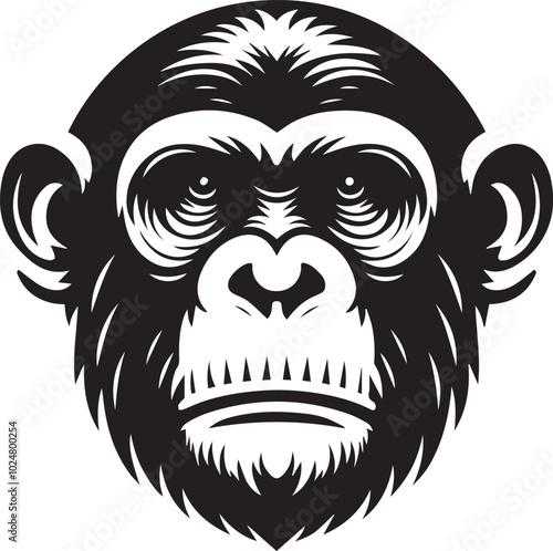 © MstSumi, Fototapeta premium Chimpanzee head silhouette black illustration
