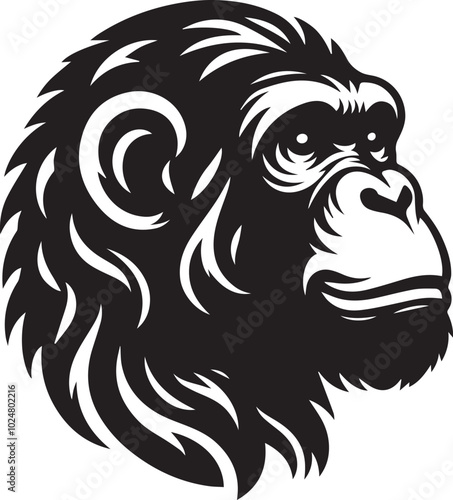 © MstSumi, Fototapeta premium Chimpanzee head silhouette black illustration
