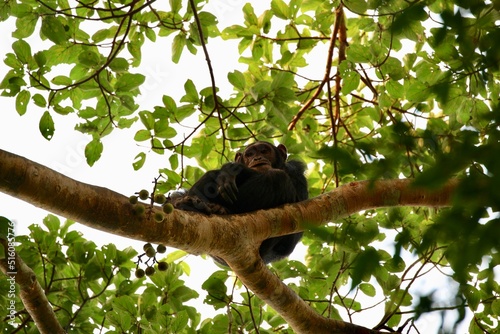 © PandaFrog, Fototapeta premium chimpanzee in a tree on safari in uganda