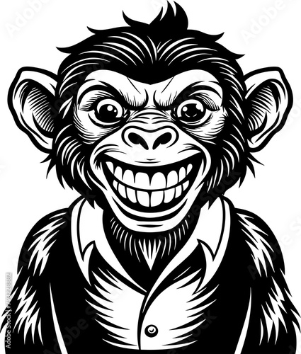 © TRTASFIQ, Obraz premium Chimpanzee Monkey Drawing, monkey, animals, logo, illustrator