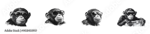Fototapeta premium Chimpanzees Wearing Sunglasses, Furry Mammals, Animal Portraits, cut out...