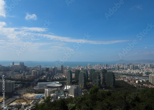 © Melena-Nsk, Fototapeta premium China, Hainan Province, overlooking the city of Sanya, in the foreground The Beauty Crown Grand Tree Hotel. Horizontal photo