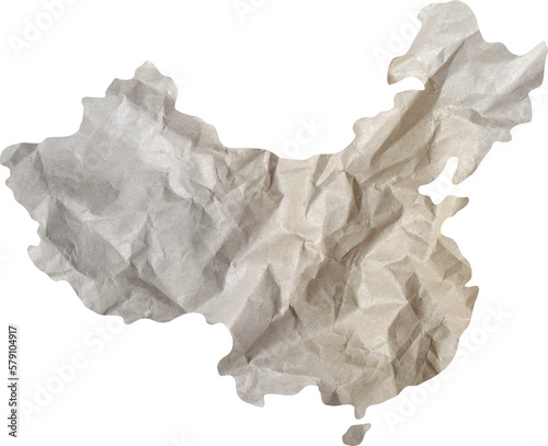 © tanarch, Obraz premium China map paper texture cut out on transparent background.