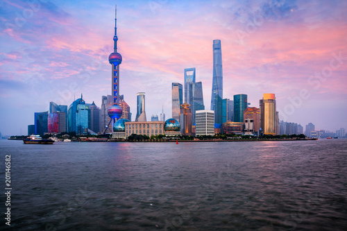 © Patrick Foto, Fototapeta premium China Shanghai city skyline at dusk, Shanghai China