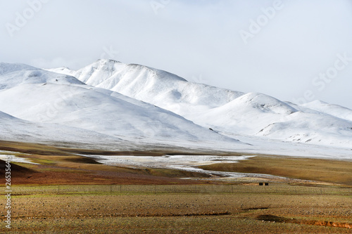 Fototapeta premium China, Tibet, the snowy peaks of the coast of mountain lake Kering in the...