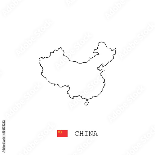 Fototapeta premium China vector map outline, line, linear. China black map on white background. China flag