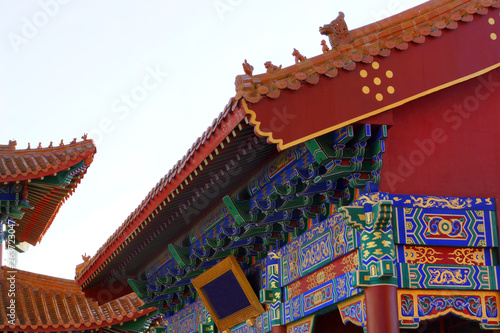 © Сергей Гусаров, Fototapeta premium Китай, Яньцзи, буддийский храм Дунлайсы. Крыша. China, Yanji, Buddhist temple Danlisa. Roof.