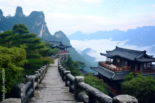 Fototapeta premium Chinese ancient buildings on the cliff outdoors