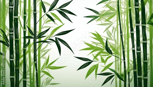 Obraz premium chinese bamboo drawing green brushstrokes modern minimalist style