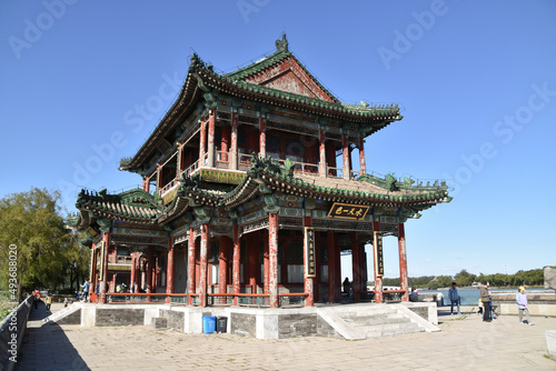 Fototapeta premium Chinese Buddhist Temple on a Lake in Beijing, China