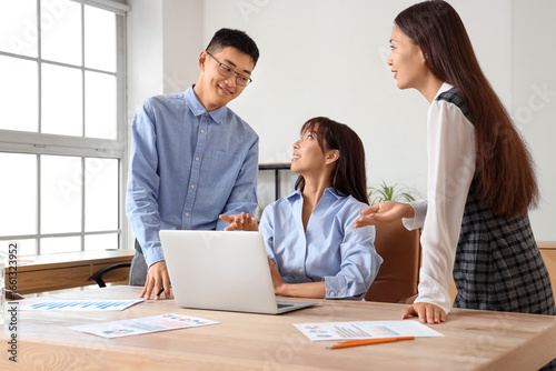 Obraz premium Chinese business people working with laptop at table in office
