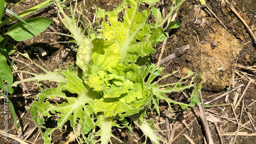 Fototapeta premium Chinese cabbage damaged by insect pests