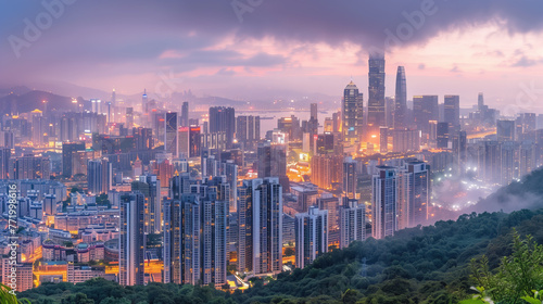 © henvryfo, Fototapeta premium Chinese city architecture dusk landscape,created with Generative AI tecnology.