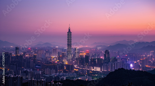© henvryfo, Fototapeta premium Chinese city architecture dusk landscape,created with Generative AI tecnology.