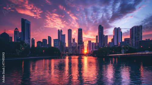 Fototapeta premium Chinese city architecture dusk landscape,created with Generative AI tecnology.