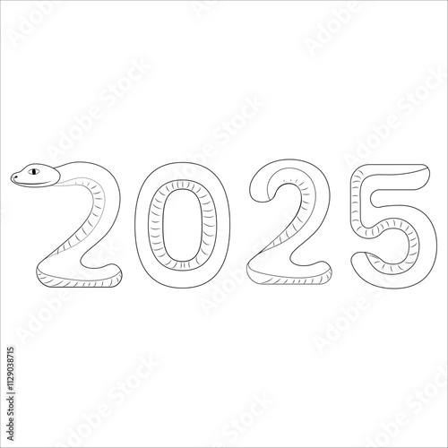 Fototapeta premium Chinese 2025 Contour White and Black New Year Numeric. Zodiac Asia Silhouette Snake