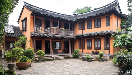 © tewewr, Obraz premium Chinese Courtyard House Exterior