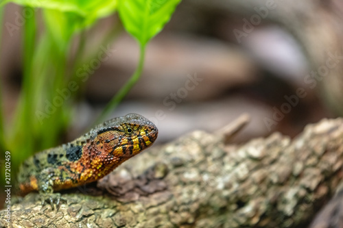 © terry, Fototapeta premium chinese crocodile lizard sitting on old log