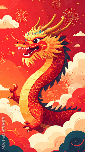 © Anna, Obraz premium chinese dragon on red background