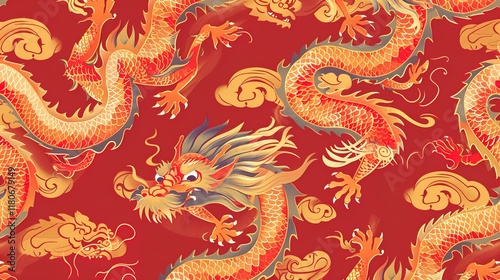 Obraz premium Chinese dragon seamless pattern wallpaper