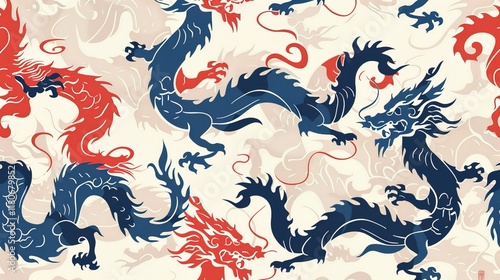 Obraz premium Chinese dragon seamless pattern wallpaper