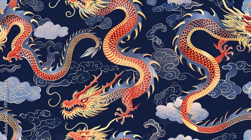 Obraz premium Chinese dragon seamless pattern wallpaper