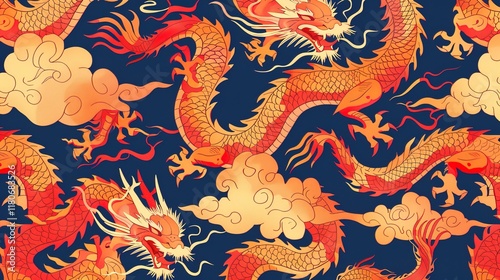 Obraz premium Chinese dragon seamless pattern wallpaper