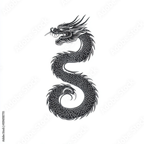 Obraz premium Chinese Dragon Silhouette, Black And White Illustration Isolated On White...